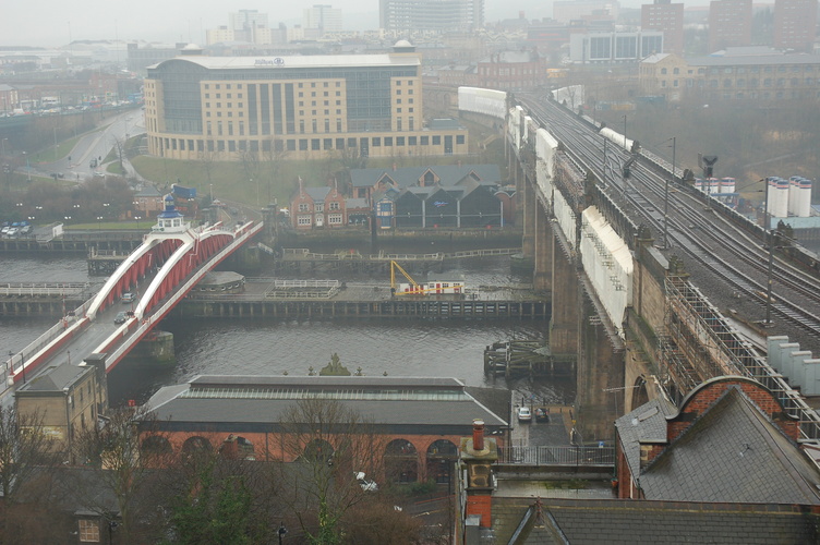 View from roof of keep towards Tyne Bridge and Gateshead L XL headers |