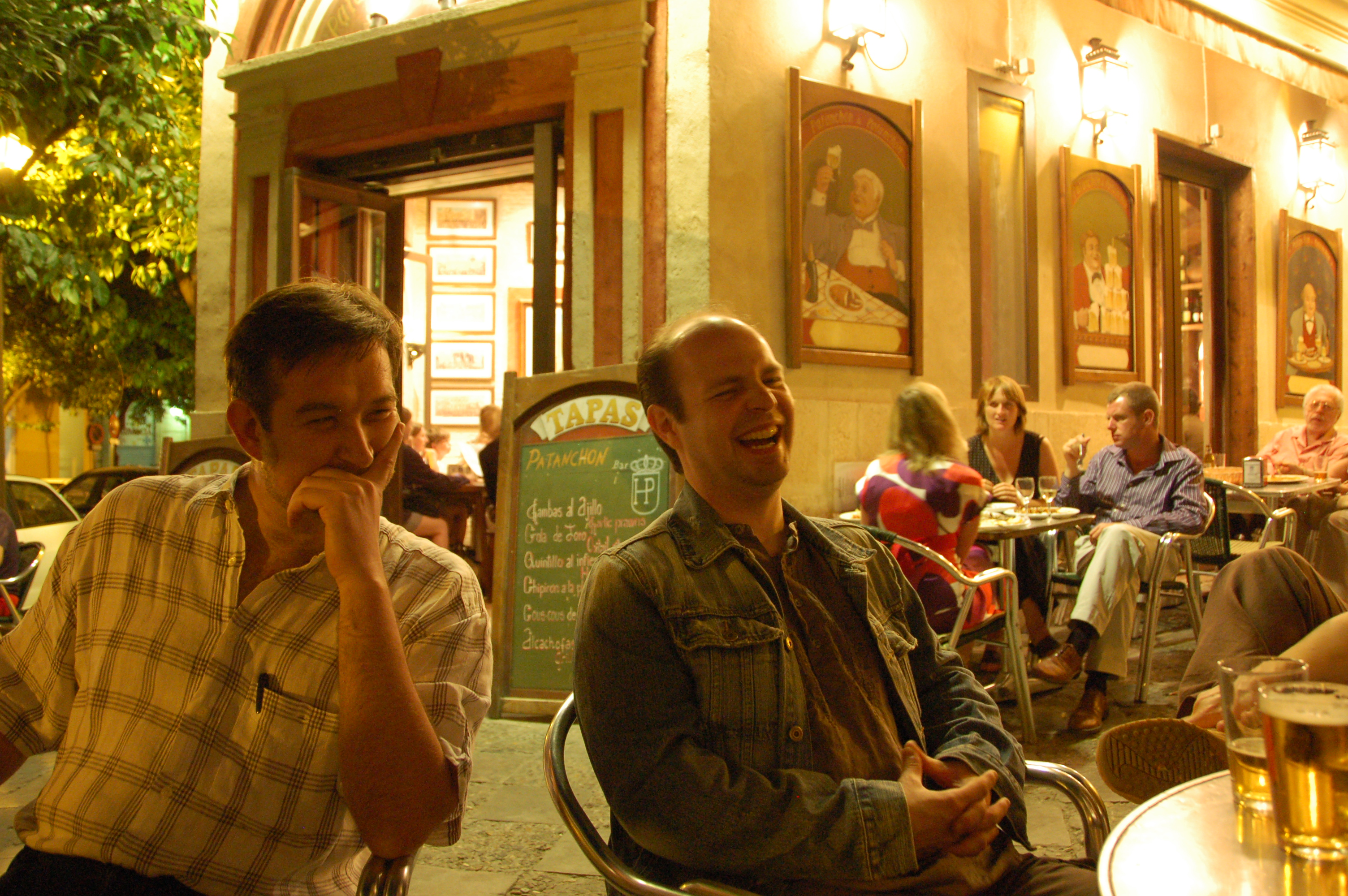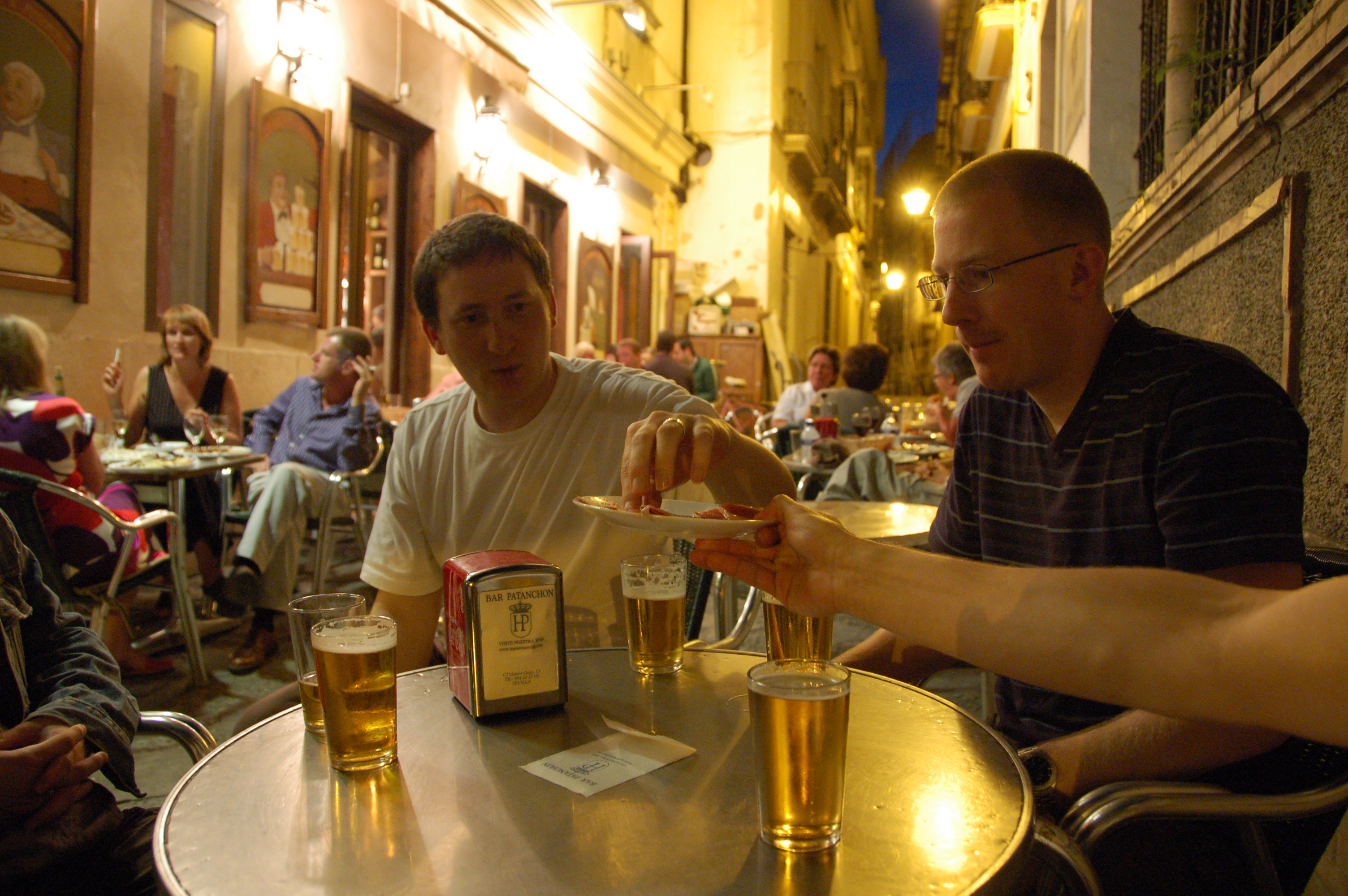 Gathering in a tapas bar: Patrick, Jon G, Chas, Jon A, Karsten M L XL headers |