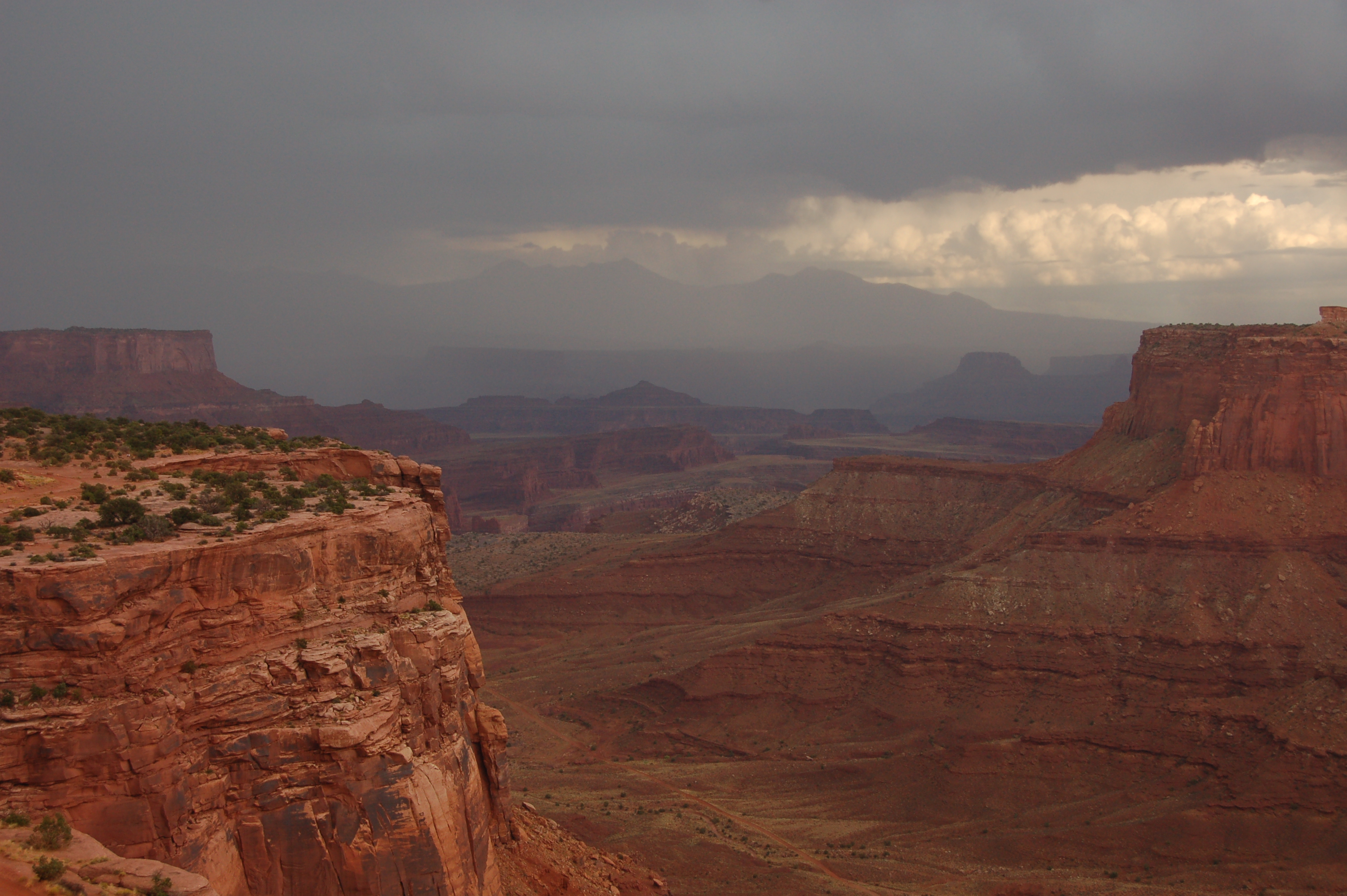 Back by the visitor centre, looking over the Shafer Trail. The storm's now passed over. M L XL headers |
