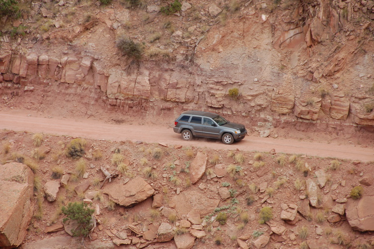 SUV descending the Shafer trail. Makes a change from doing the school run. M L XL headers |