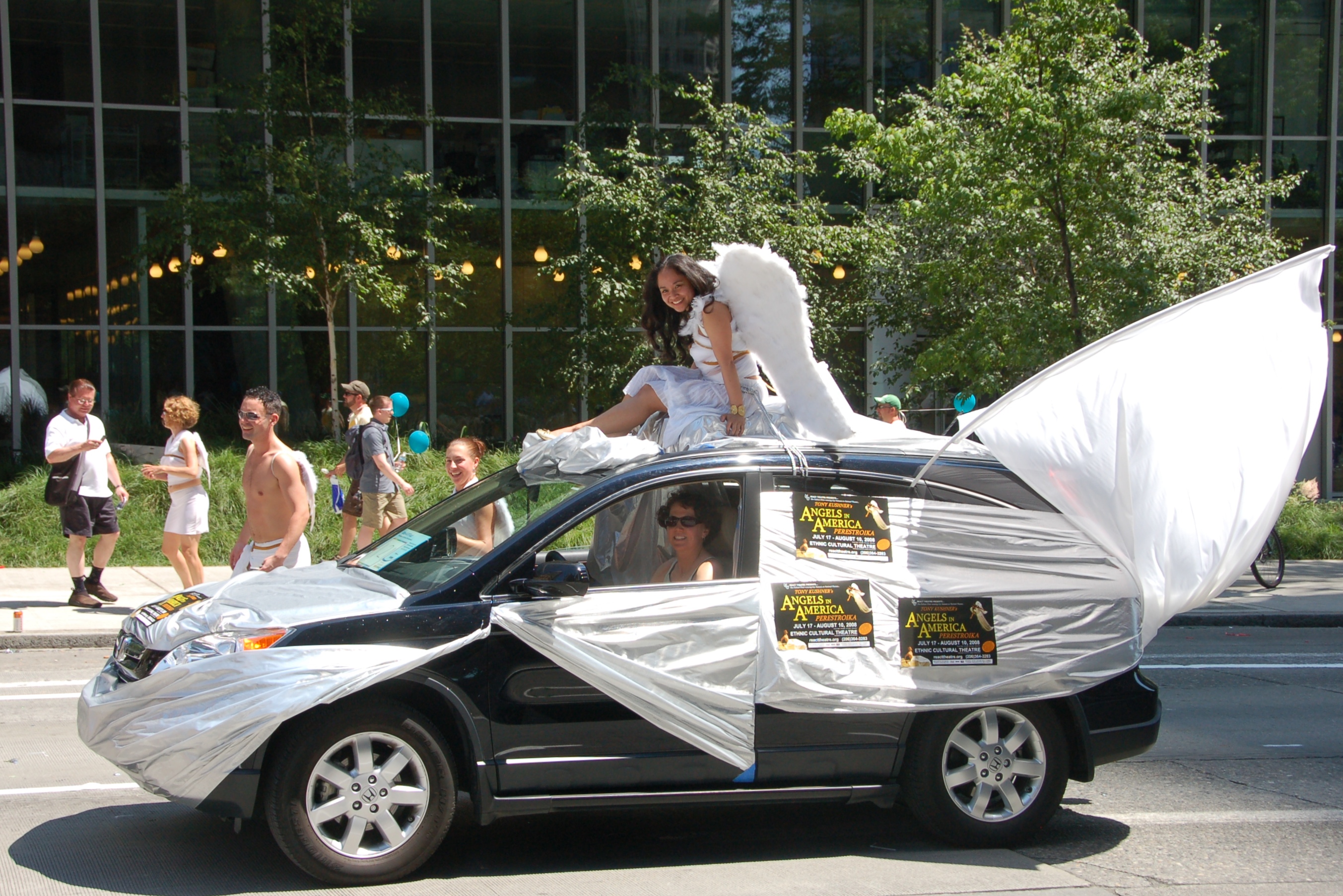 Float advertising play Angels in America L XL headers |
